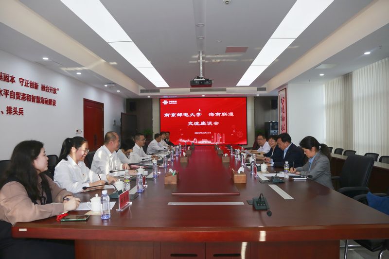 在海口邮区中心座谈 在海南联通,勾善文总经理感谢母校悉心培育,代表校友们表达了感恩之情。海南联通产业互联网有限公司负责人冯磊介绍了海南联通研究院的成立背景、建设规划、校企合作以及创新成果等情况。海南联通积极融入智慧海南和数据资源建设,依托5G通信、大数据、人工智能等技术创新引领作用,契合中国科技信息产业的发展需求,助力数字经济高质量发展。勾善文总经理指出,海南联通和南邮保持着长期友好关系,在重点学科建设、联合科创实验室、技术实训实践平台、产学研一体化和高质量人才培养等特色领域合作前景广阔,通过联合培养和学历提升等方式,进一步夯实高质量人才底蕴。叶校长、刘会长一行还参观了海南联通创新业务体验中心、海南省国资系统党群共享中心和海南联通党团员政治生活馆,并与海南联通校友们深入交流。